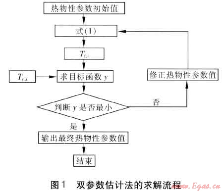 最小時,此時的熱物性參數(shù)即為所求結(jié)果。雙參數(shù)估計法的求解流程見圖1。