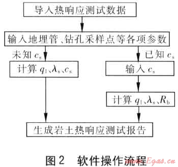 該軟件提供兩種流程求解巖土熱物性參數(shù)。求解流程1:將線熱源模型、式(2)相結(jié)合,求解巖土熱導(dǎo)率和單位體積熱容;求解流程2:已知巖土單位體積熱容,求解巖土熱導(dǎo)率和鉆孔內(nèi)熱阻。