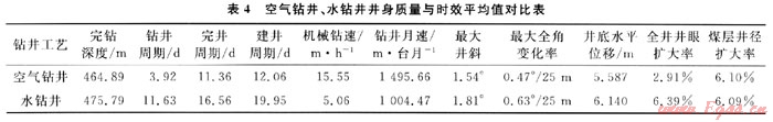 2) 空氣鉆井在井身質(zhì)量方面比水鉆井稍好一些,但相差不大;空氣鉆井在時效方面比水鉆井效率高,其機械鉆速是水鉆機械鉆速的3倍多,因此空氣鉆井周期短,綜合經(jīng)濟效益好。