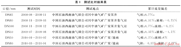 2010年初橇裝式凝析天然氣兩相流量計在巾國石油西南油氣田公司川中油氣礦合川區(qū)塊開始使用,從為期1a的測井數(shù)據(jù)看,計量效果較好,氣相測量誤差在±2%以內(nèi),液相測量誤差在±10%以內(nèi)。