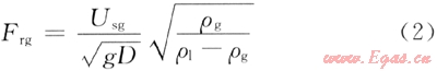 Froude數(shù)(Frg)為表征氣體慣性力與重力之比的無量綱相似準則數(shù)[5],反映了氣體的表觀速度、壓力等諸多因素的內(nèi)在聯(lián)系,具體表達式如下: