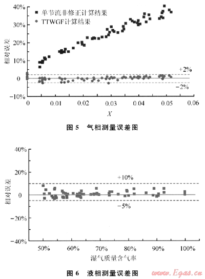 4) 在工業(yè)現(xiàn)場實驗白測、比對測試及用戶測試過程中,氣相累計流量偏差在±2%以內(nèi),液相累計流量偏差在±10%以內(nèi),相對短時的液塞對總的測量結果不會產(chǎn)生較大影響。