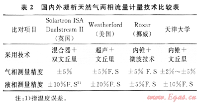 表2為英國Solartron ISA公司、美國Weatherford公司與挪威Roxar公司濕氣流量計產(chǎn)品技術指標與天津大學濕氣測量技術水平的比較。
