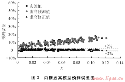 圖2為內(nèi)錐節(jié)流裝置虛高模型預測誤差圖,圖3為文丘里節(jié)流裝置虛高模型預測誤差圖,兩節(jié)流裝置虛高模型的虛高修正誤差在±1%以內(nèi)。