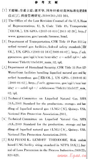 可見,美國LNG安全法規(guī)和標(biāo)準(zhǔn)不僅其內(nèi)容和技術(shù)措施,而且其體系結(jié)構(gòu)及其相互關(guān)系,尤其是其作用途徑均值得我們借鑒。