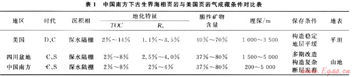2 中美頁巖氣成藏條件對比