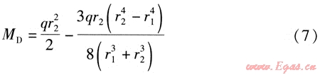 設(shè)r2≥r1,則活動(dòng)支架B、D處管道截面彎矩MB、MD的計(jì)算式分別為:
