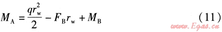 活動(dòng)支架A處管道截面彎矩帆的計(jì)算式為:
