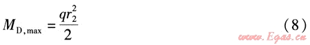 由式(5)、(6)可知,當(dāng)r2≥r1時(shí),MD≥MB。因此,只要活動(dòng)支架D處管道滿足強(qiáng)度條件,活動(dòng)支架B處的管道必然滿足強(qiáng)度條件。將式(4)代入式(6),得到: