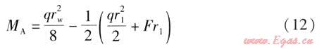按強(qiáng)度條件確定活動(dòng)支架A、B的最大允許間距rw,max,必須考慮最不利情況。以r1為變量對(duì)式(12)求極值,可求得到當(dāng)r1=0時(shí)MA取得最大值,即: