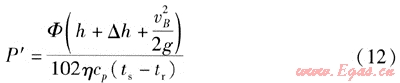 常壓熱水鍋爐集中供熱系統(tǒng)循環(huán)泵功率P′的計算式為:
