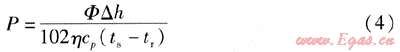有壓熱水鍋爐供熱系統(tǒng)循環(huán)泵質(zhì)量流量qm的計算式為: