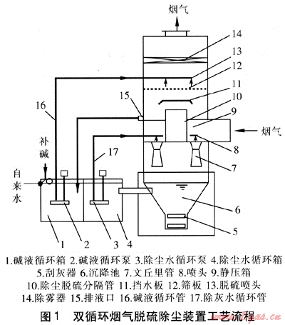 1 雙循環(huán)煙氣脫硫除塵機(jī)理