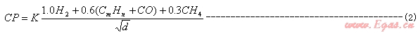 2.燃燒勢公式中的燃氣成分采用的單位不是百分比而是百分數(shù)。從量綱上看,它也不是燃燒速度。