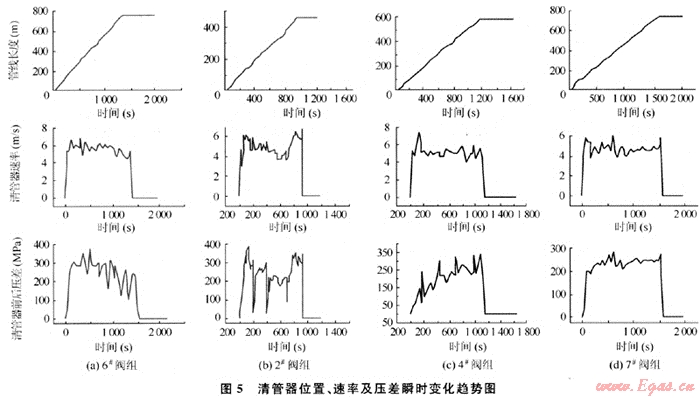 2.3.3清管器瞬時(shí)位置、速率及壓降變化規(guī)律