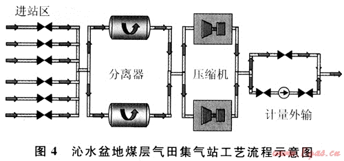 已經(jīng)開(kāi)發(fā)建設(shè)的蘇里格氣田屬于低滲、低壓、低產(chǎn)氣田,采用“井下節(jié)流、井口不加熱、不注醇、采氣管線不保溫、中低壓集氣、帶液計(jì)量、井間串接、常溫分離、二地增壓、集中處理”的低壓集氣工藝[2],大大降低了地面工程建設(shè)投資,并經(jīng)受了實(shí)踐檢驗(yàn)。這種工藝模式有許多值得沁水盆地煤層氣田開(kāi)發(fā)建設(shè)借鑒之處。