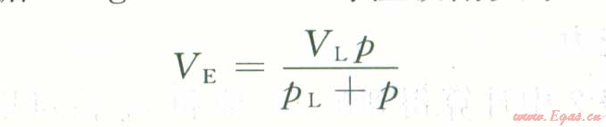 式中K為在壓力P下單位體積儲層里吸附氣的體積,m3/t;V。.為Langmuir體積,表示吸附劑的最大吸附體積,M3/t;P為氣體壓力,MPa;pl,為Langmuir壓力,MPa,此時吸附氣體積(VE)為Langmuir體積的1/2。