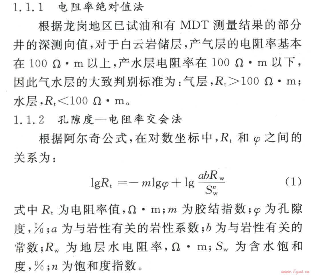 針對礁灘氣藏這種復(fù)雜的儲層特征,通過對電阻率法、孔隙度重疊法、縱橫波速度比法和泊松比法Ф-Rt交會法、P1/2法以及中子長短源距計數(shù)率法等11種方法的深入研究[1],優(yōu)選出3種適合龍崗復(fù)雜礁灘氣藏流體識別的方法,即電阻率法、中子和聲波信息組合法、縱橫波信息法。在此基礎(chǔ)上,巖性分白云巖和石灰?guī)r、地層分長興組和飛仙關(guān)組分別開展巖電試驗以及在不同飽和度下的縱橫波速度比試驗,對以上3種方法進行改進,建立了消除巖性和孔隙度影響的流體性質(zhì)判別技術(shù),解決了高阻灰?guī)r、云灰過渡巖儲層的流體識別問題。