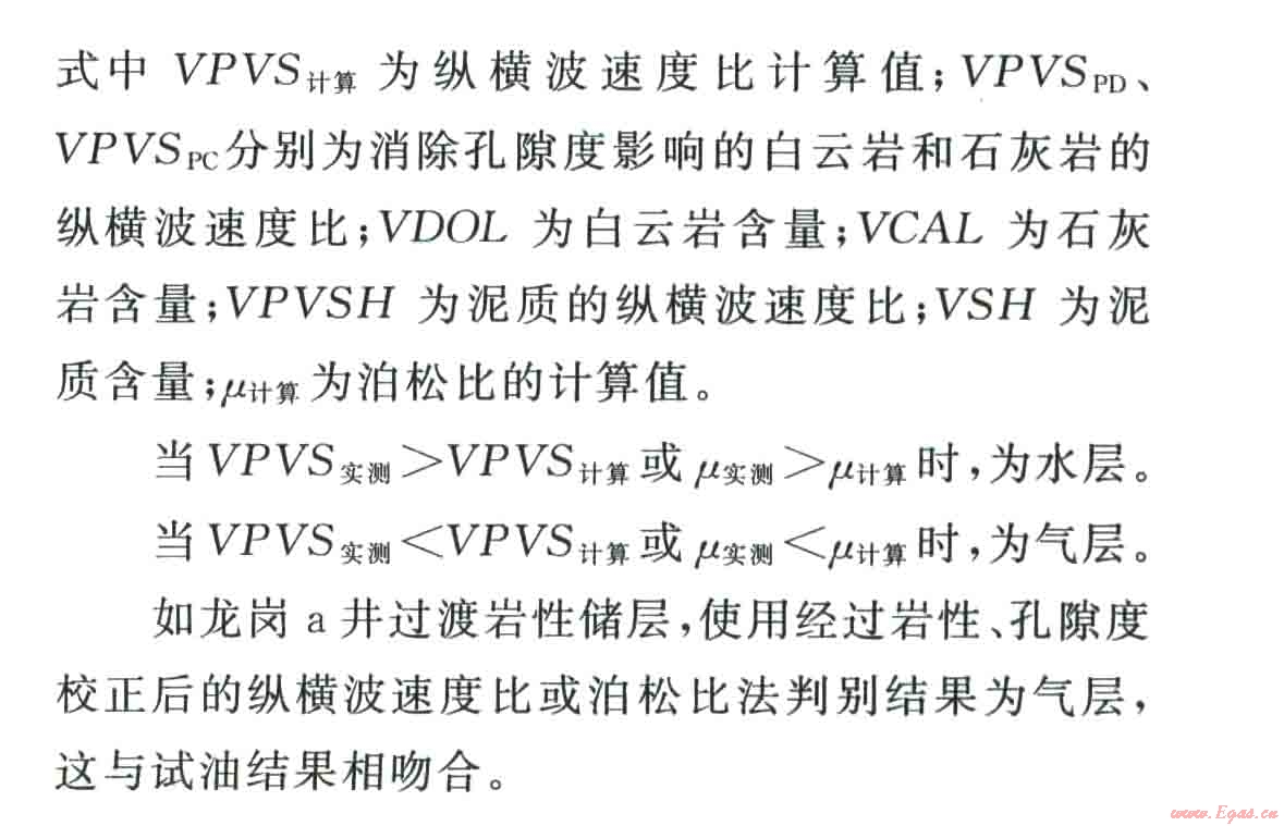 氣層:橫波和縱波能量比與橫波和縱波時差比曲線呈鏡像變化。