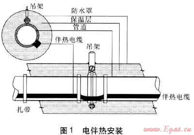 電伴熱的功能是通過伴熱電纜用電能彌補(bǔ)管道燃?xì)庠谑褂眠^程中的熱損失或提高管道燃?xì)饩植康臏囟龋构艿廊細(xì)饩植康臏囟染S持在一定的范圍內(nèi)。
