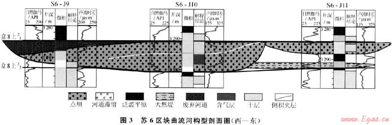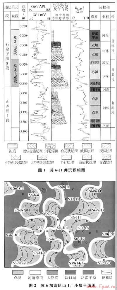 在河流相構(gòu)型單元中,河道砂體構(gòu)型單元、溢岸構(gòu)型單元相當(dāng)于傳統(tǒng)沉積微相概念中的微相組合國模,點(diǎn)壩、天然提、決口扇等則相當(dāng)于單一微相,而點(diǎn)壩內(nèi)部的側(cè)積體、側(cè)積面等則相當(dāng)于單一微相的內(nèi)部單元。構(gòu)型研究比傳統(tǒng)的沉積微相研究更為精細(xì),目前我國油氣田生產(chǎn)部門對(duì)儲(chǔ)層研究多限于單一微相級(jí)別,對(duì)單一微相內(nèi)部的結(jié)構(gòu)單元研究很少,然而,這些微相內(nèi)部的構(gòu)型單元對(duì)油氣層內(nèi)部剩余油氣分布及開發(fā)效果具有十分重要的控制作用。在蘇里格氣田高效開發(fā)過程中,開展高效開發(fā)先導(dǎo)試驗(yàn)區(qū)的儲(chǔ)層構(gòu)型研究,使蘇里格氣田的儲(chǔ)層研究更加精細(xì)化和定量化。