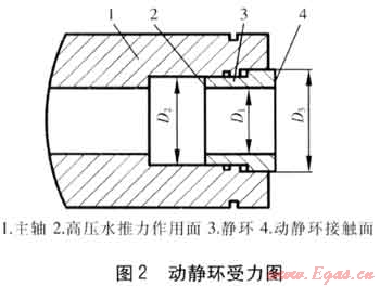 式中F——高壓水對靜環(huán)的推力,N