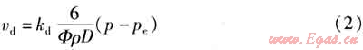 vd=kdAs(p-pe) (1)