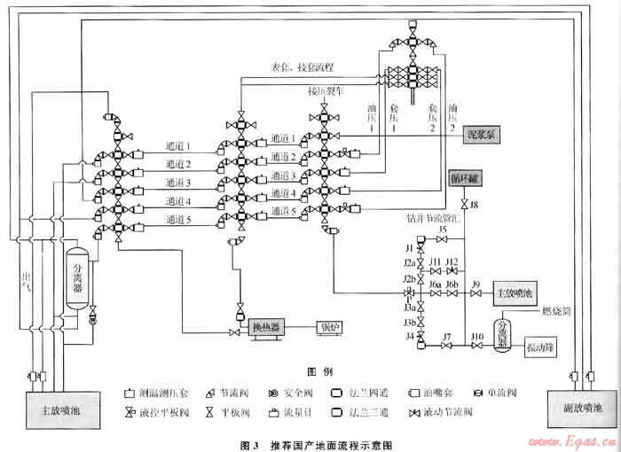 2) 采用三級節(jié)流測試流程,充分利用鉆井壓井和節(jié)流管匯與測試流程組成壓井、堵漏管網,配齊備用液控平板閥和節(jié)流閥、油嘴套和油嘴。
