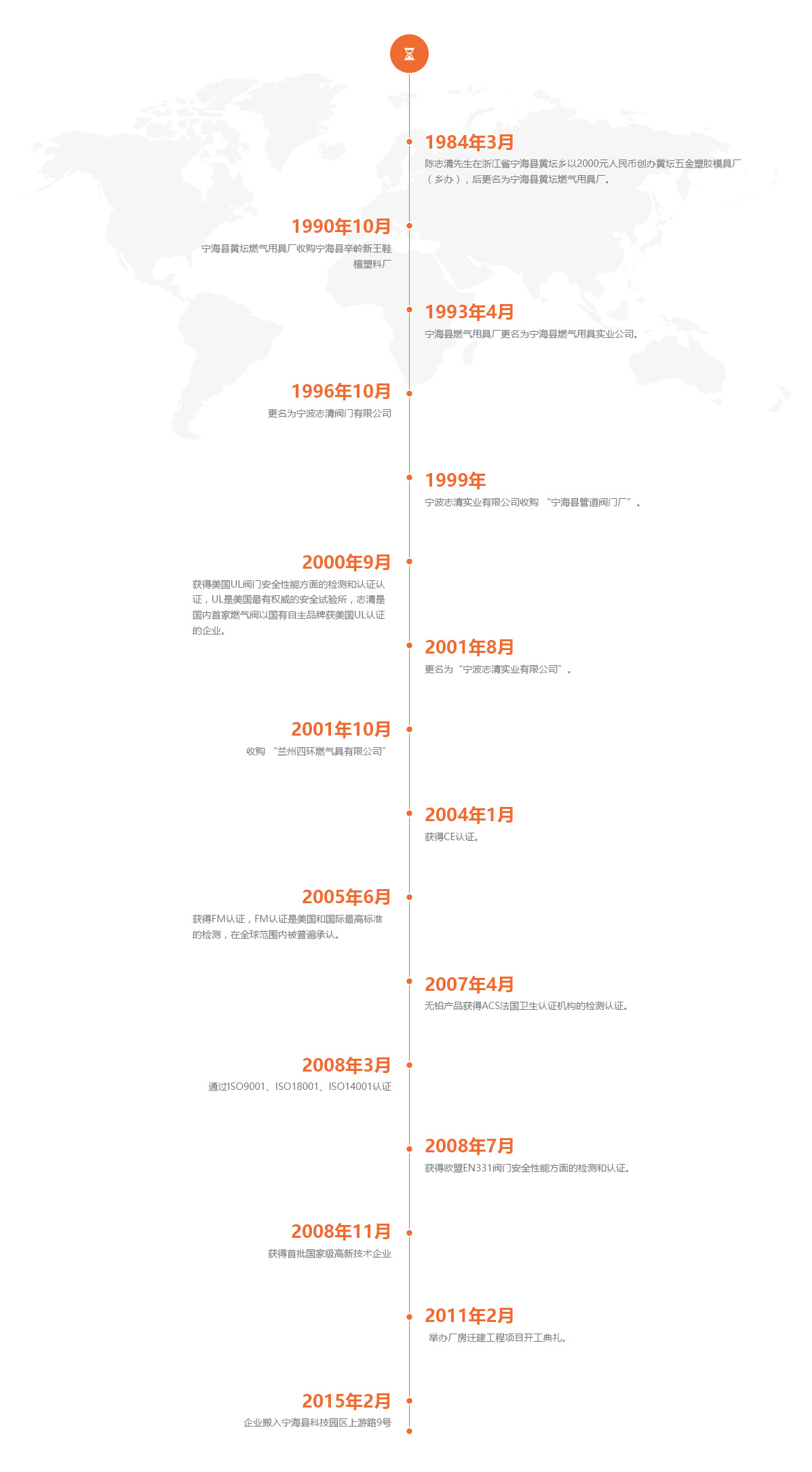 公司先后同港華燃?xì)狻⑷A潤燃?xì)?、北京燃?xì)獾?300多家知名企業(yè)建立長期戰(zhàn)略合作伙伴關(guān)系;1997年“志清”閥門進(jìn)軍歐美市場,與30多個(gè)國家和地區(qū)的知名企業(yè)建立長期穩(wěn)定的業(yè)務(wù)關(guān)系。“志清人”以敢為人先、誠信務(wù)實(shí)的精神,先后獲得浙江省名牌產(chǎn)品、中國機(jī)電產(chǎn)品進(jìn)出口商會推薦出口品牌、浙江省知名商號等榮譽(yù),“志清”商標(biāo)在52個(gè)國家和地區(qū)注冊,形成全球優(yōu)質(zhì)閥門供應(yīng)與服務(wù)的良好局面。
