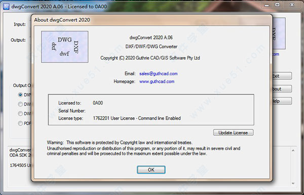 4、至此,dwgConvert(AutoCAD版本轉(zhuǎn)換器) 2020 A.06破解版成功注冊(cè)破解,運(yùn)行打開(kāi)軟件,用戶可以無(wú)限制免費(fèi)使用啦