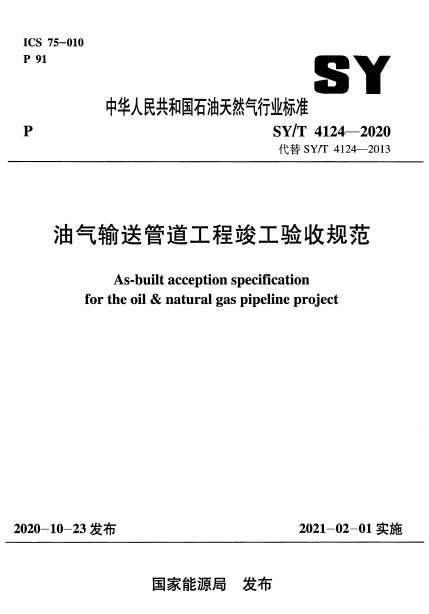 油氣輸送管道工程竣工驗(yàn)收規(guī)范SY/T 4124-2020