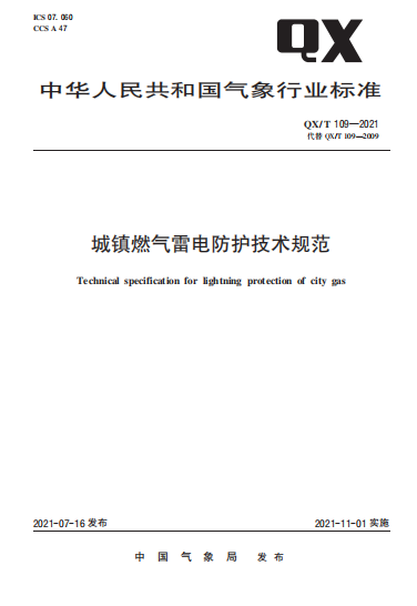 城鎮(zhèn)燃氣雷電防護技術(shù)規(guī)范QXT 109-2021