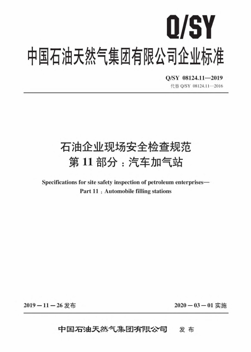 Q∕SY 08124.11-2019 石油企業(yè)現(xiàn)場安全檢查規(guī)范 第11部分:汽車加氣站