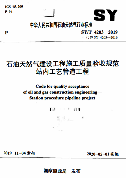 石油天然氣建設(shè)工程施工質(zhì)量驗(yàn)收規(guī)范 站內(nèi)工藝管道工程石油天然氣標(biāo)準(zhǔn)/T 4203-2019