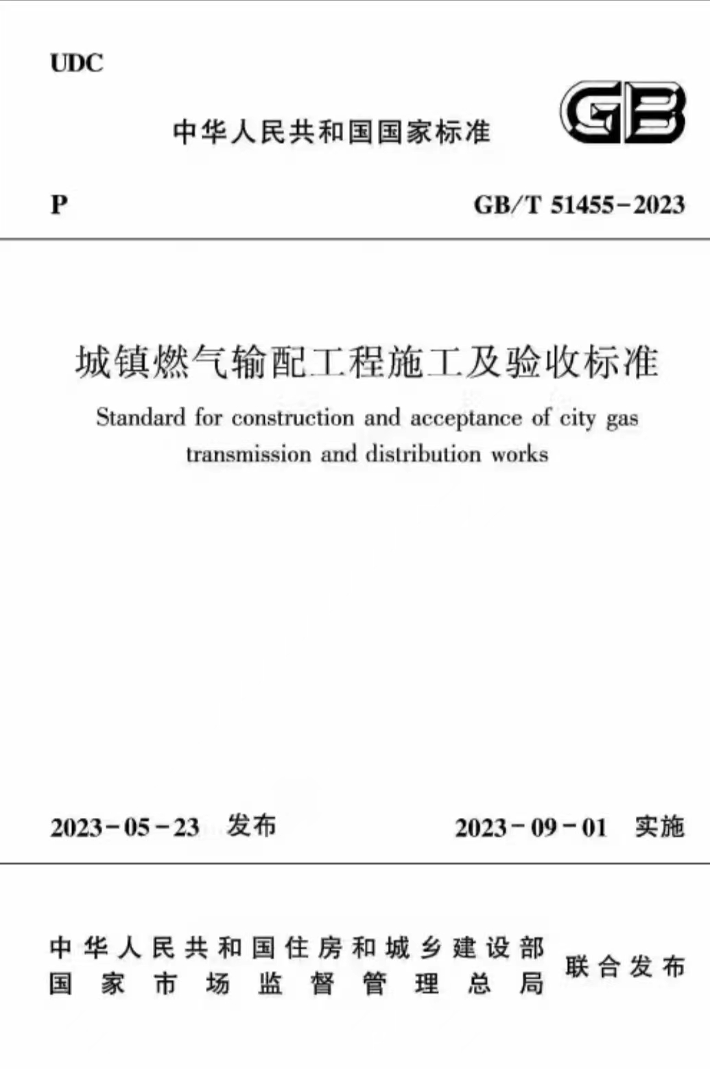 現(xiàn)批準(zhǔn)《城鎮(zhèn)燃?xì)廨斉涔こ淌┕ぜ膀?yàn)收標(biāo)準(zhǔn)》為國(guó)家標(biāo)準(zhǔn),編號(hào)為GB/T 51455 - 2023,自 2023 年 9 月 1 日起實(shí)施。原行業(yè)標(biāo)準(zhǔn)《城鎮(zhèn)燃?xì)廨斉涔こ淌┕ぜ膀?yàn)收規(guī)范》CJJ 33- 2005 同時(shí)廢止。