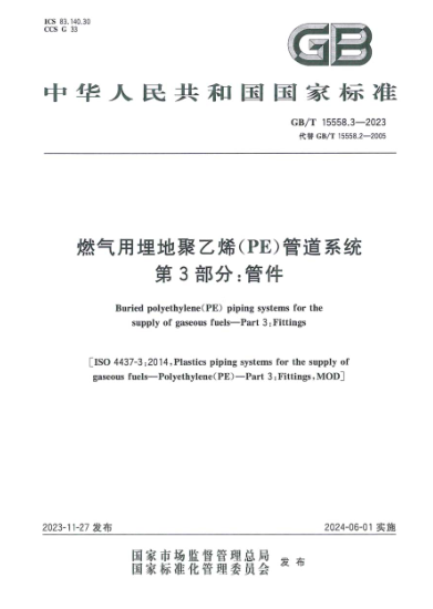 燃?xì)庥寐竦?a href=http://www.tlzl001.com/e/tags/?tagname=%E8%81%9A%E4%B9%99%E7%83%AF target=_blank class=infotextkey>聚乙烯(PE)管道系統(tǒng) 第3部分:管件GB/T 15558.3-2023