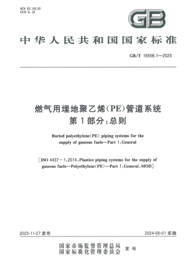 燃?xì)庥寐竦?a href=http://www.tlzl001.com/e/tags/?tagname=%E8%81%9A%E4%B9%99%E7%83%AF target=_blank class=infotextkey>聚乙烯(PE)管道系統(tǒng) 第1部分:總則GB/T 15558.1-2023